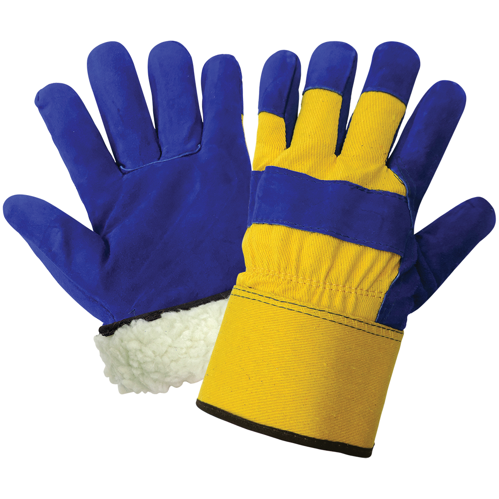 These insulated leather gloves feature a premium split cowhide leather shell and yellow canvas back. Inside of the gloves, the heavy pile lining insulates against cold weather and low temperatures.