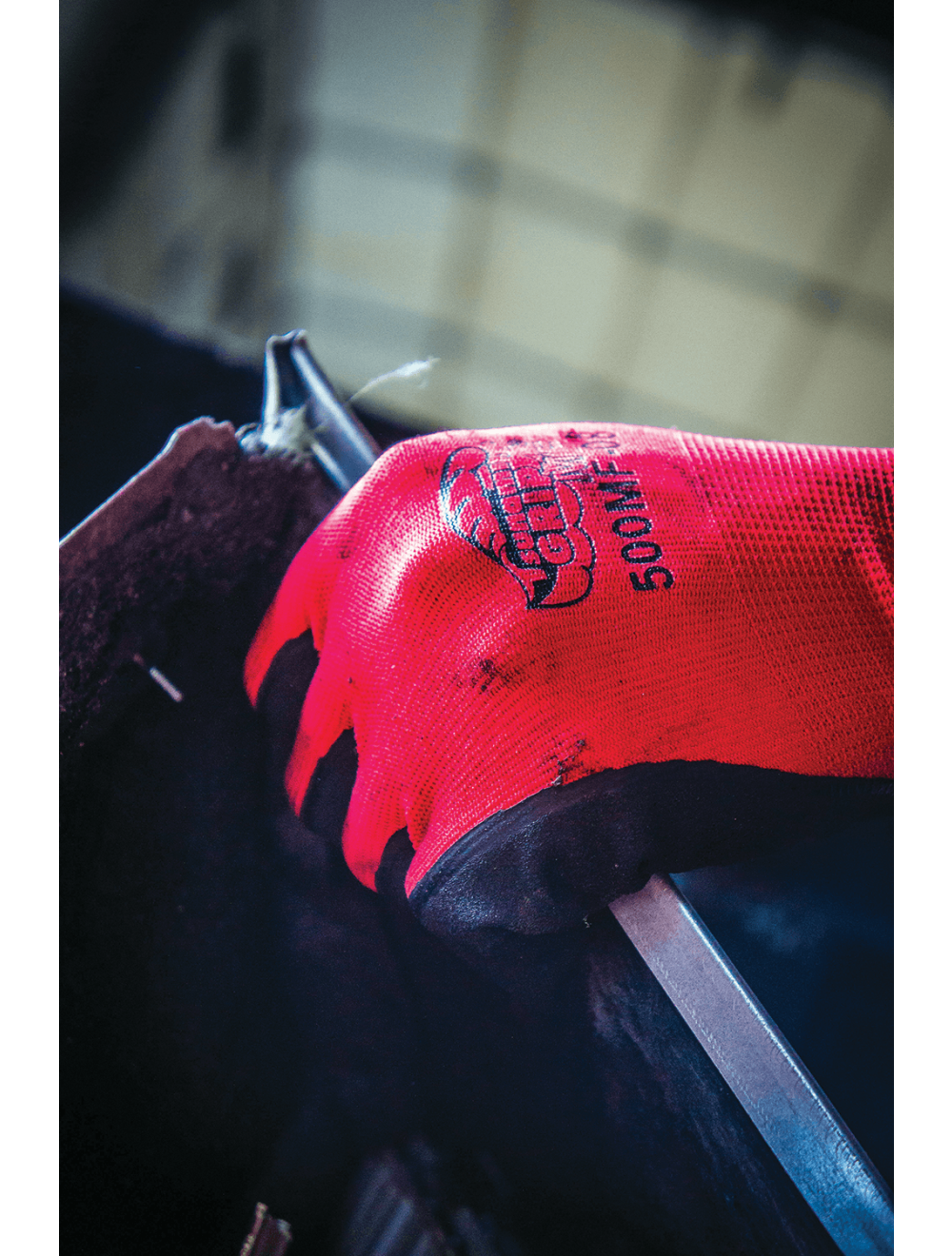 - Abrasion-resistant Mach Finish nitrile offers excellent grip in wet and oily conditions