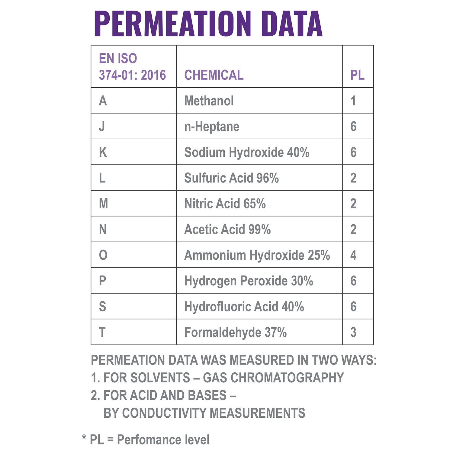 - EN 374 Levels: AJKLMNOPST