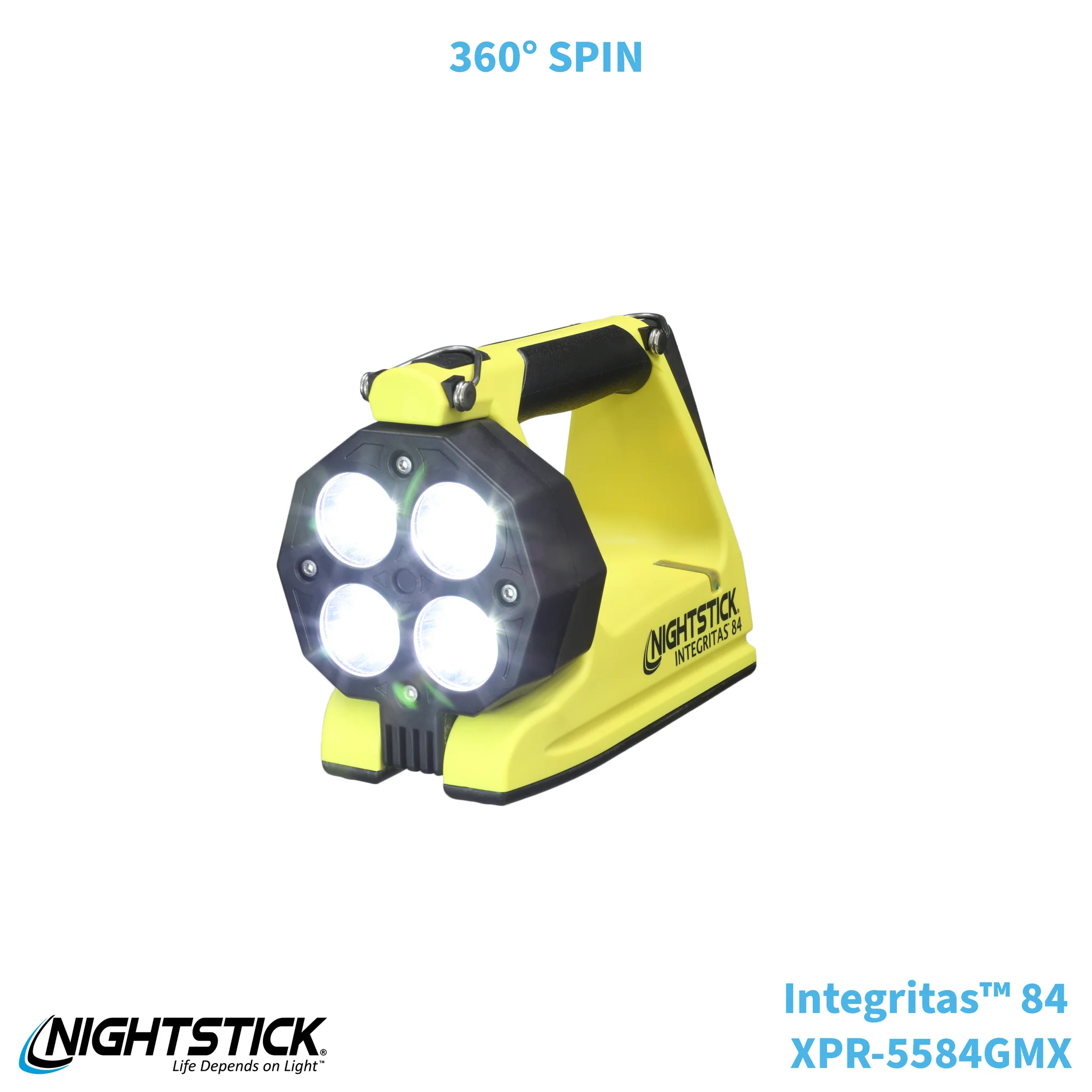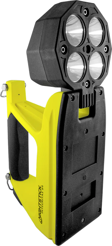 The INTEGRITAS™ 84 Intrinsically Safe Rechargeable Lantern generates a scene-filling 600 lumens for an ultra-long 13 hours from four separate LEDs housed in a 180-degree articulating head for maximum versatility. Holding down the switch enables a battery-saving 250-lumen low mode, extending runtime to 25 hours when work demands extreme use. Designed and engineered as both a hand-held lantern and portable area light, the 5584 features a rear-mounted rubber base pad featuring a 25 lb. pull-force rare earth magnet for convenient hands-free, adjustable scene lighting on demand.