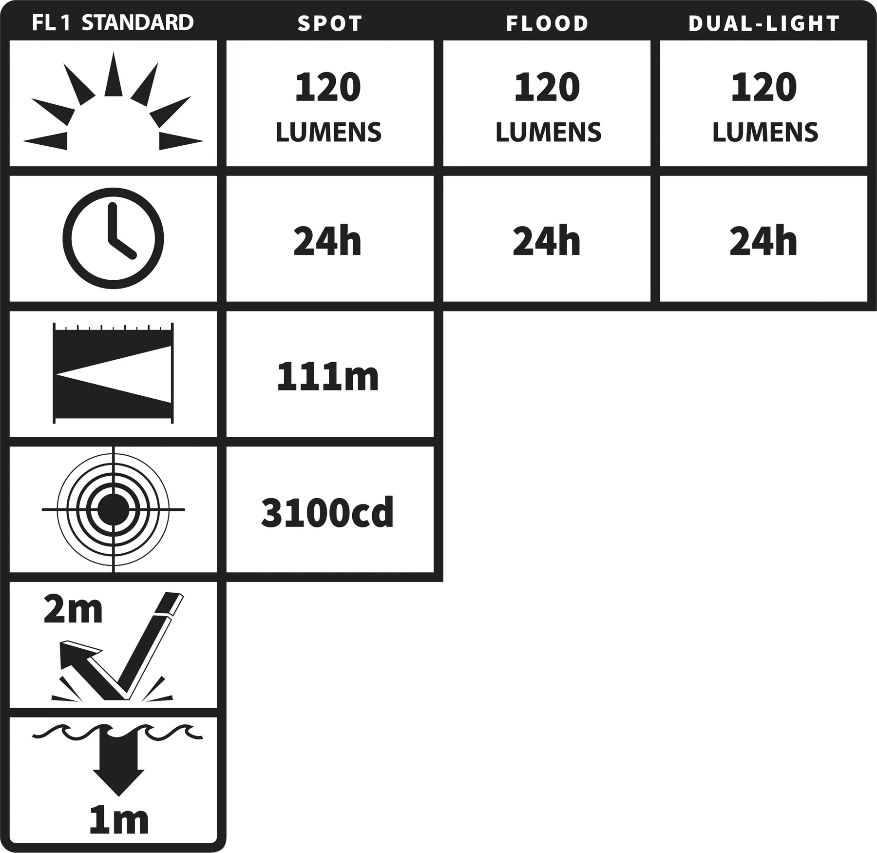 - High Dual-Light Runtime (h): 24